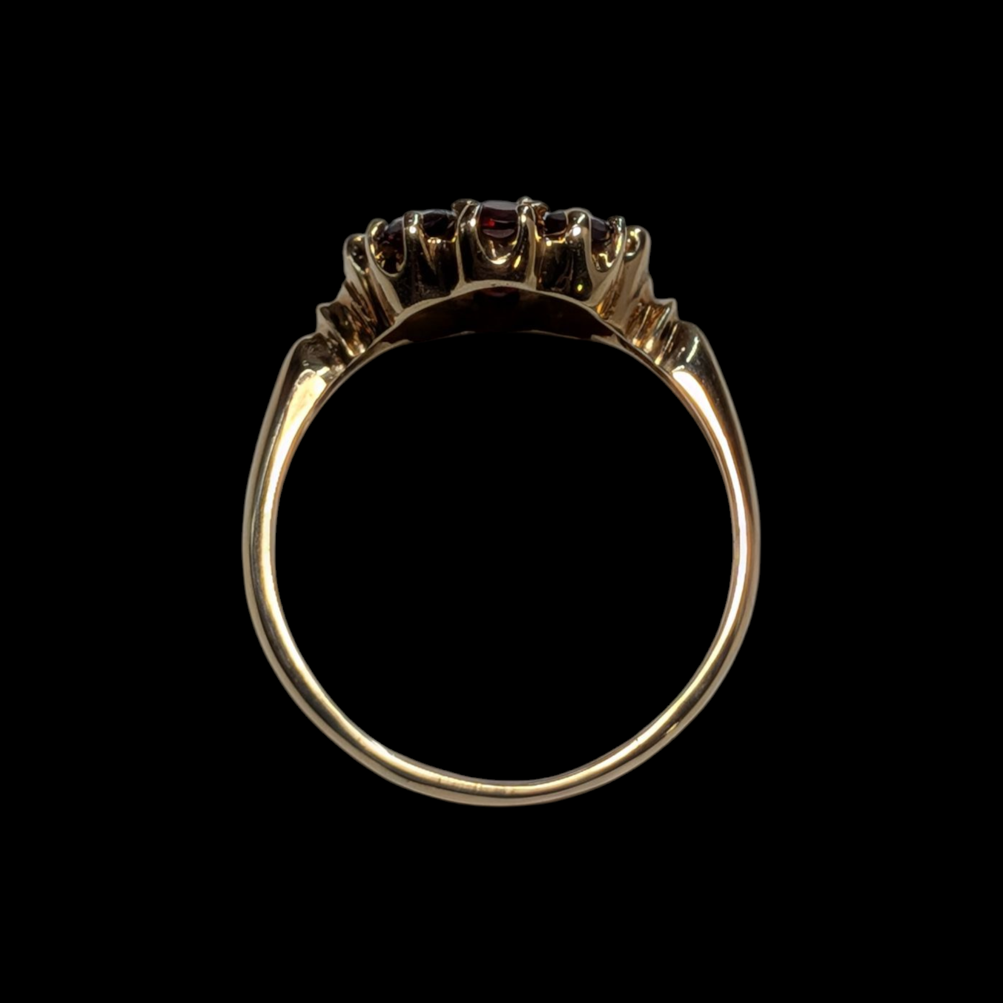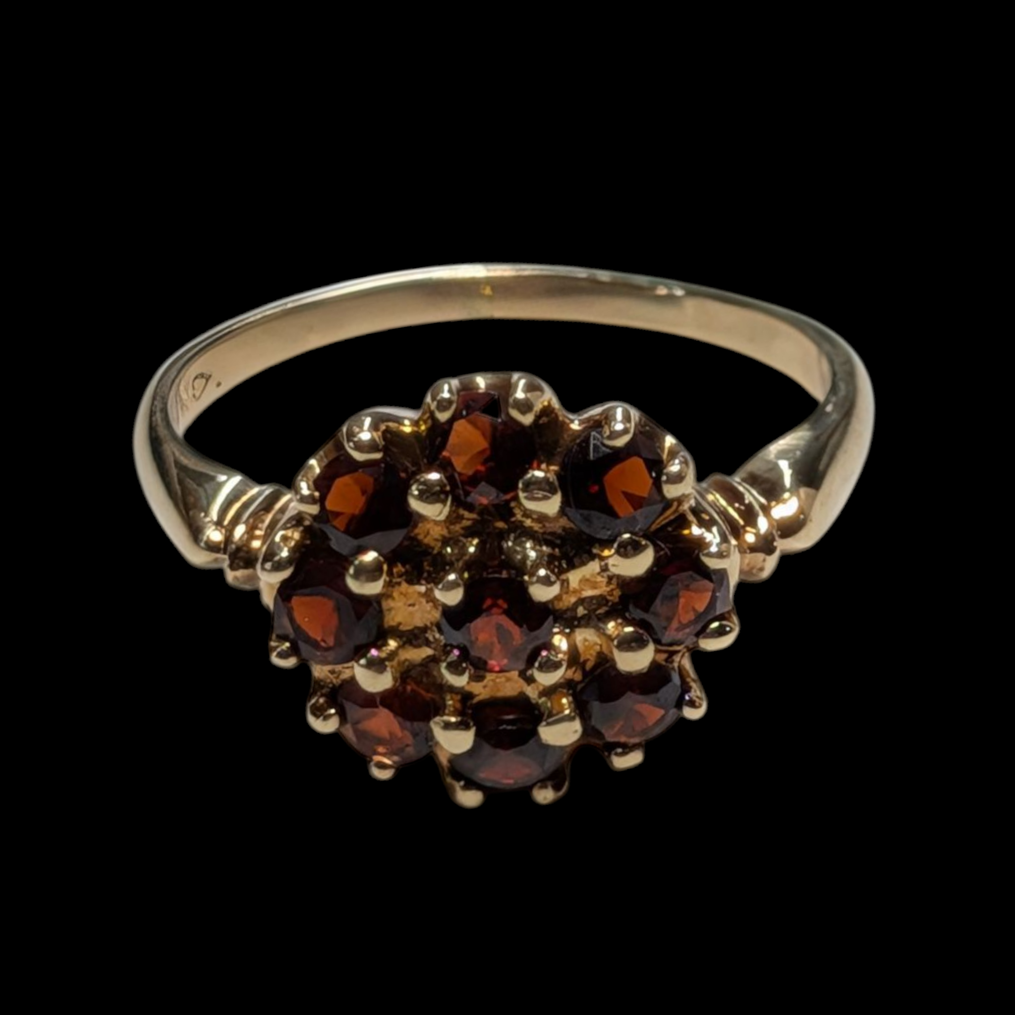 - Dimensions: Face: 3/4" x 1/2", Garnet (x9): 3mm