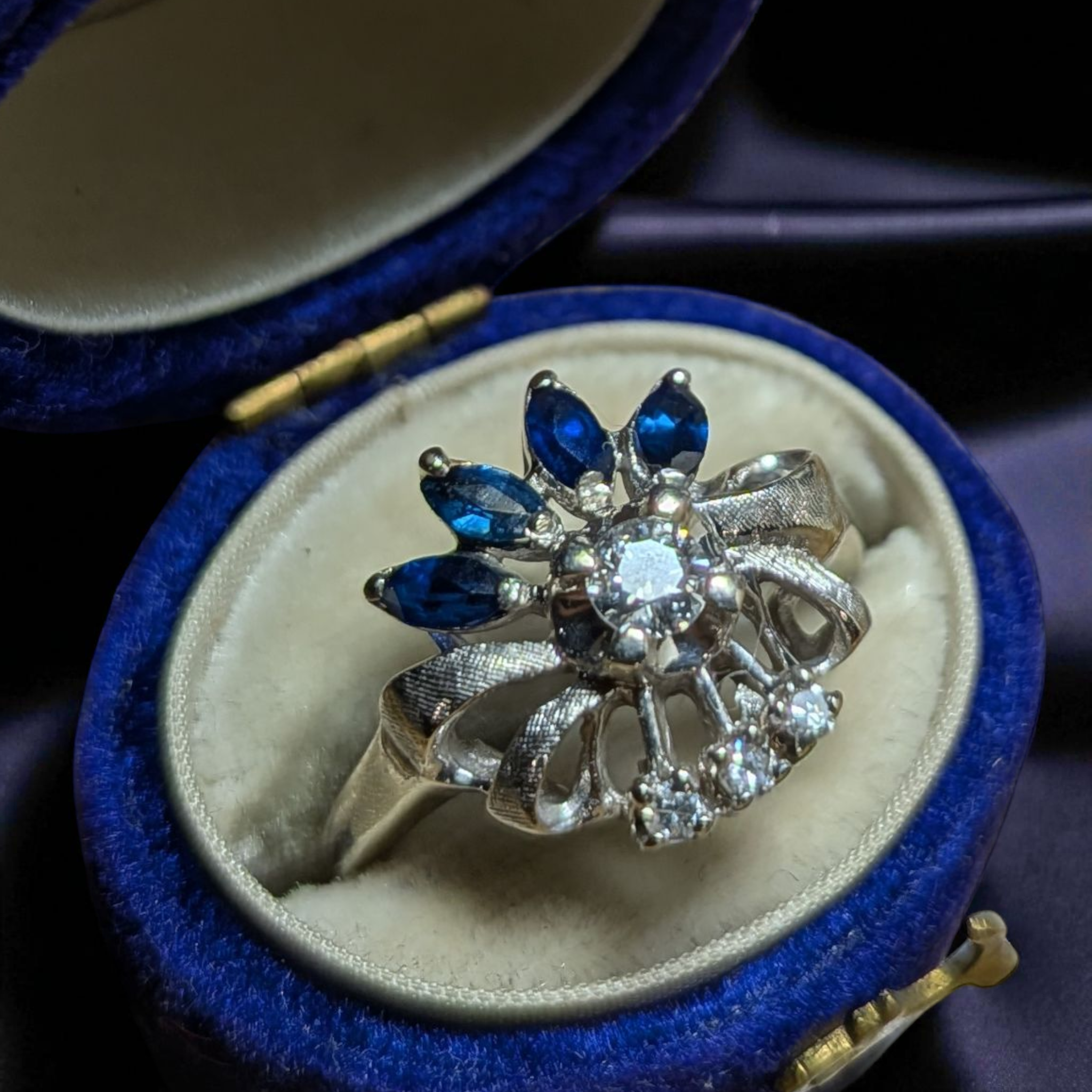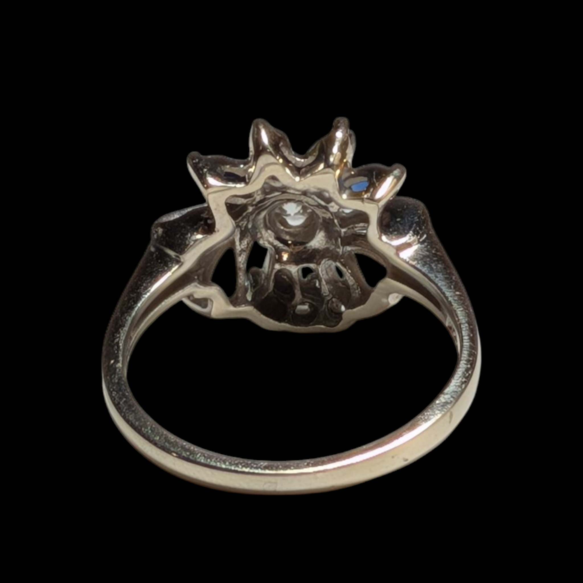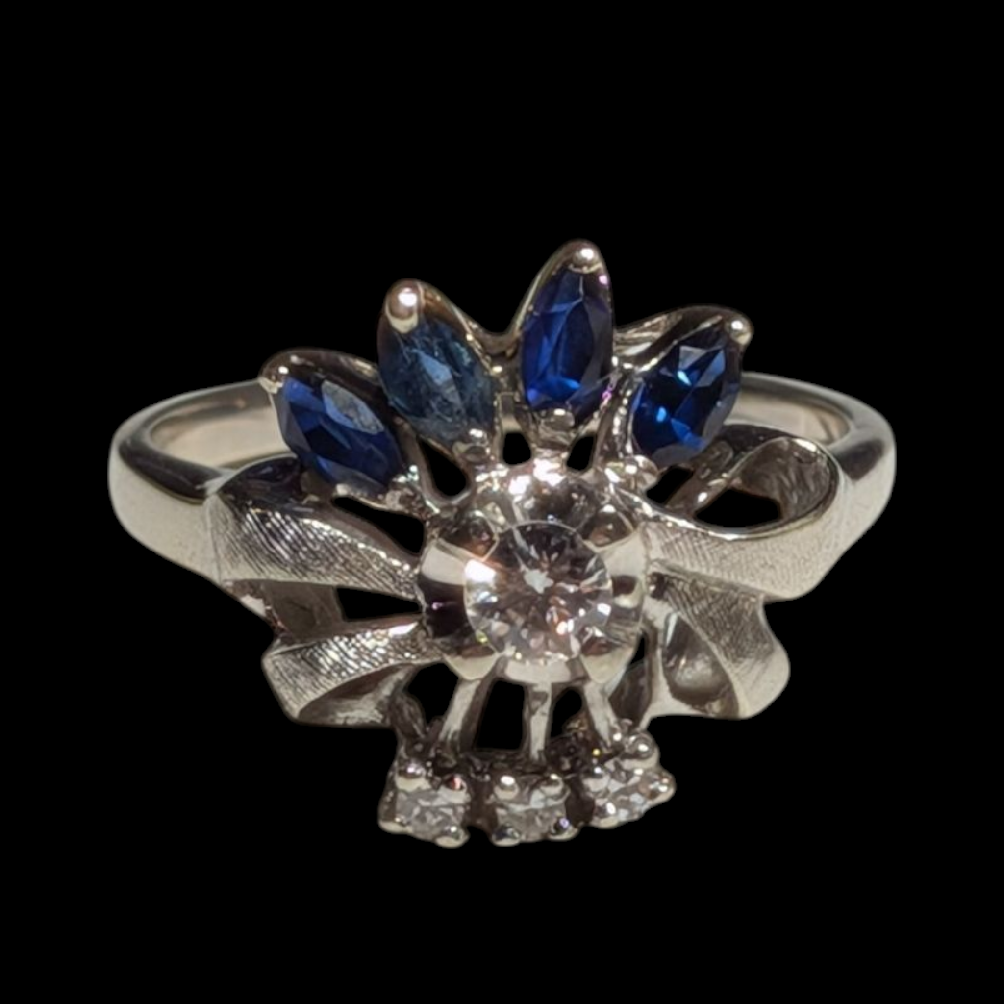 - Material: 14K White Gold with Natural Diamond and Sapphire