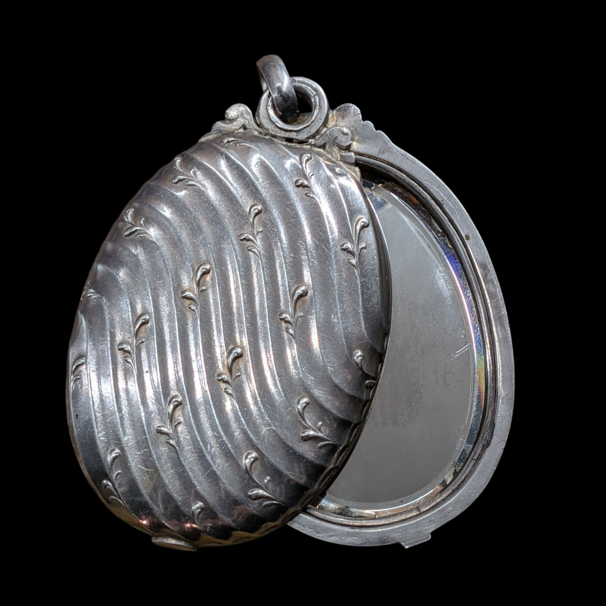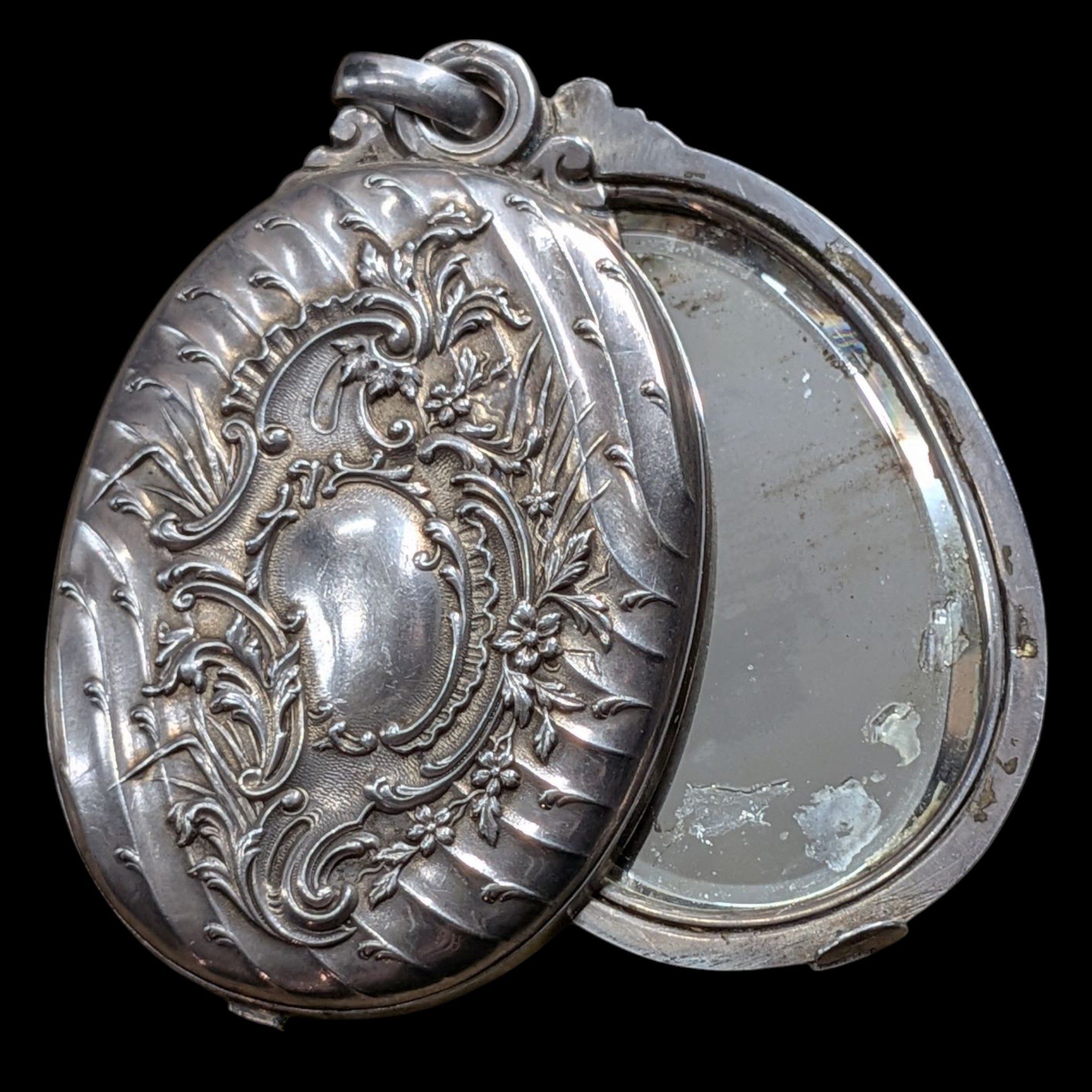 This piece is hallmarked and stamped. I believe it could be a French hallmark. The mirrors are in fair condition. Incredible statement piece!