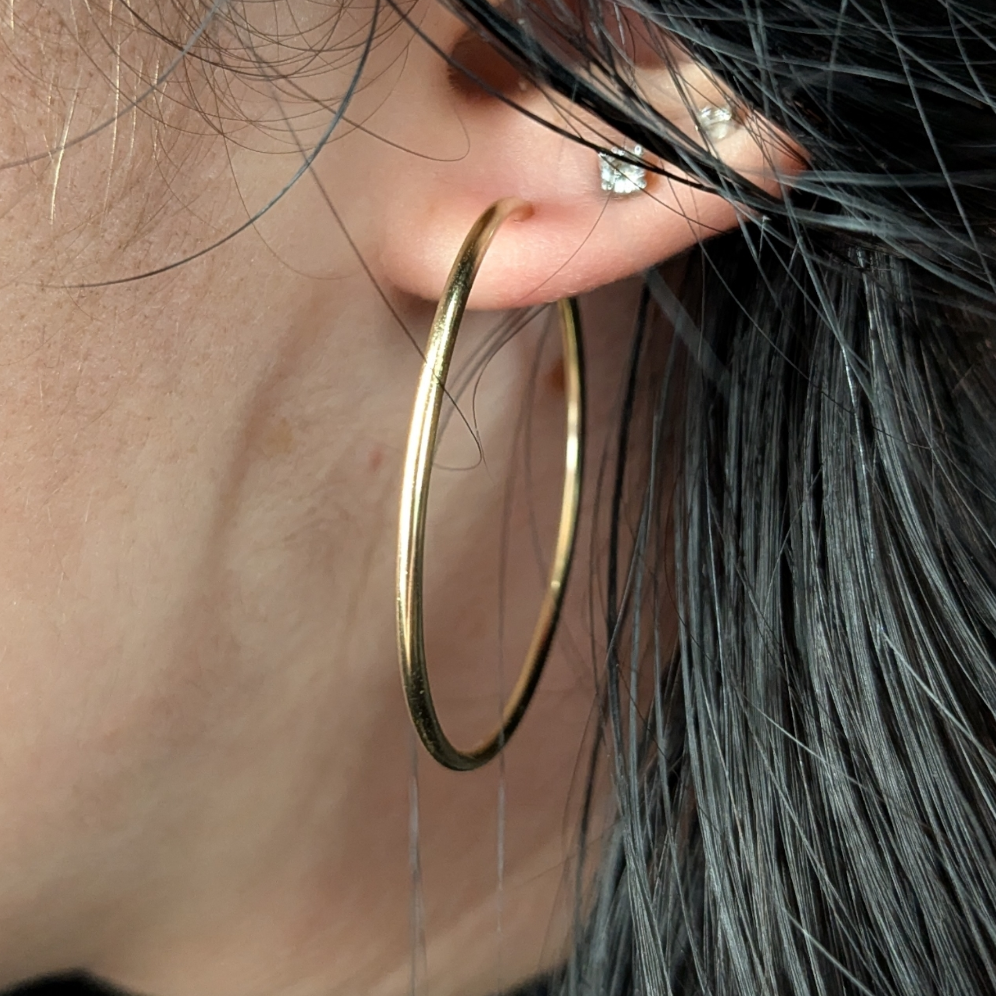 Extra Large 10K Yellow Gold Hoop Earrings Pierced
