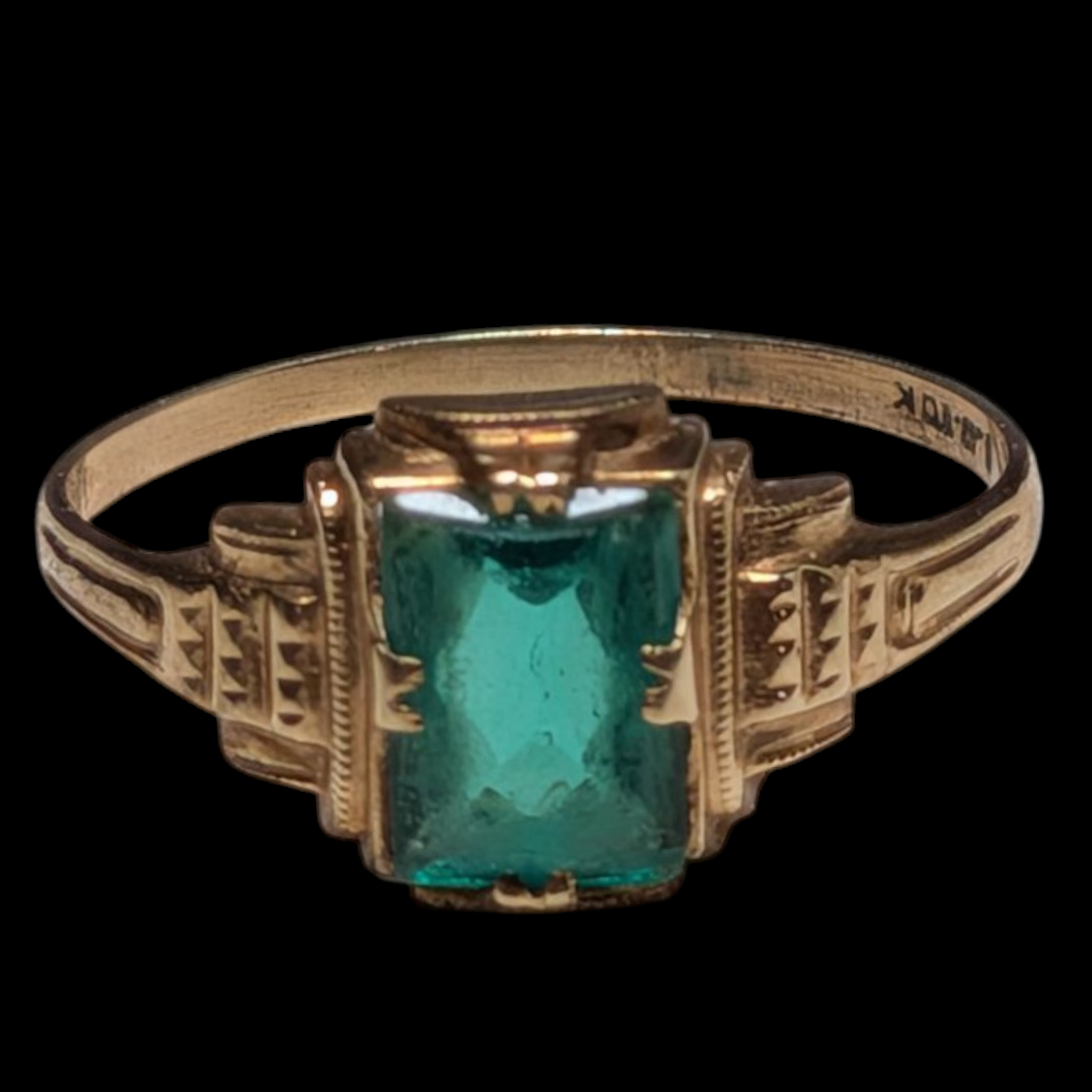 - Material: 10K Gold and Green Glass