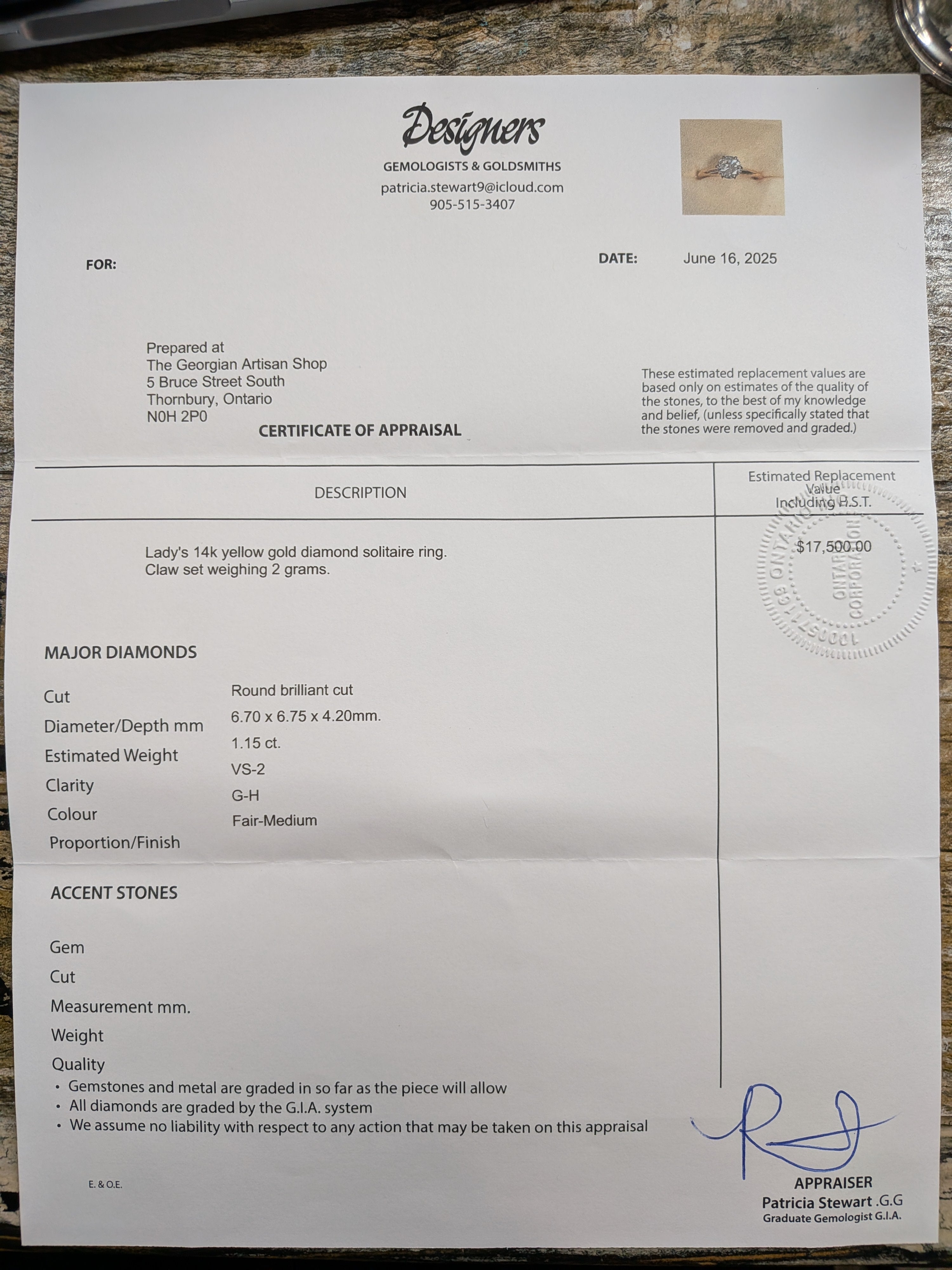 - Dimensions: Height: 5/16", Diamond 1.15 CT