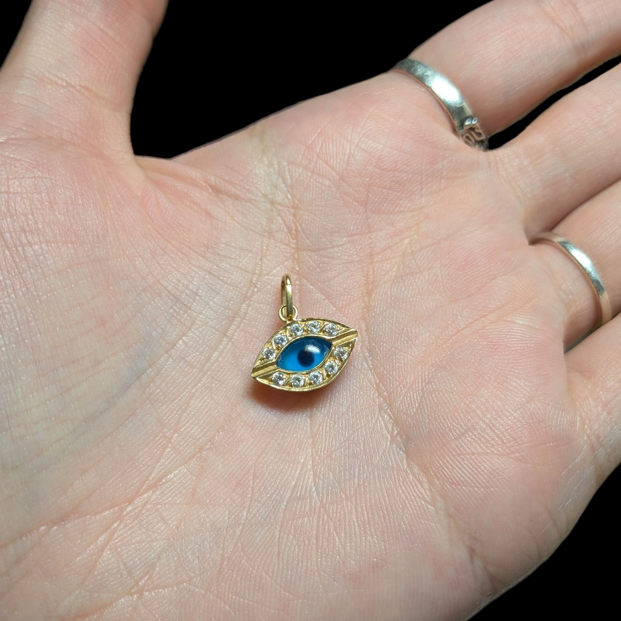 - Material: 14K Yellow Gold, Blue Murano Glass, and Cubic Zirconia