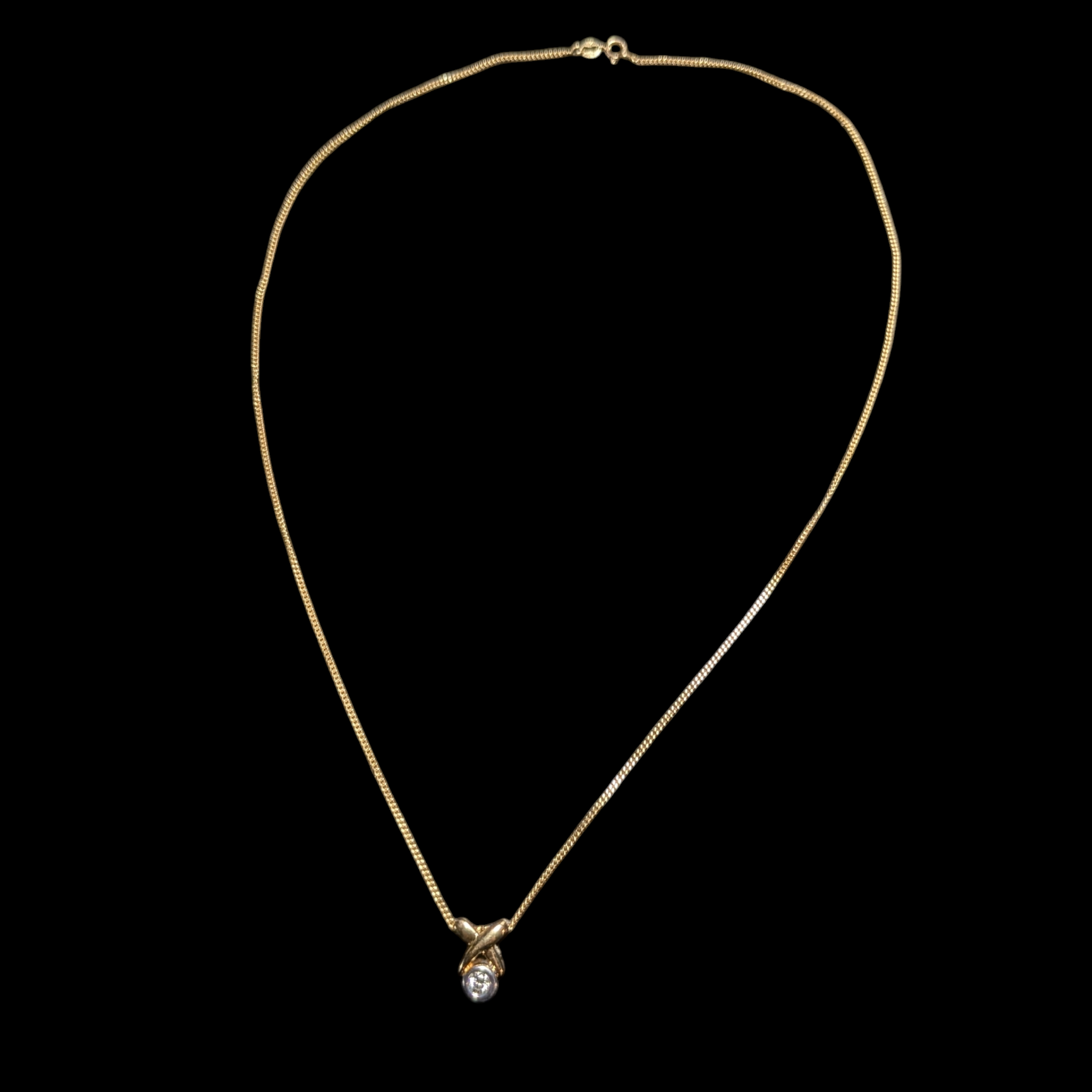 X O Natural Diamond 10K Yellow Gold Pendant Necklace