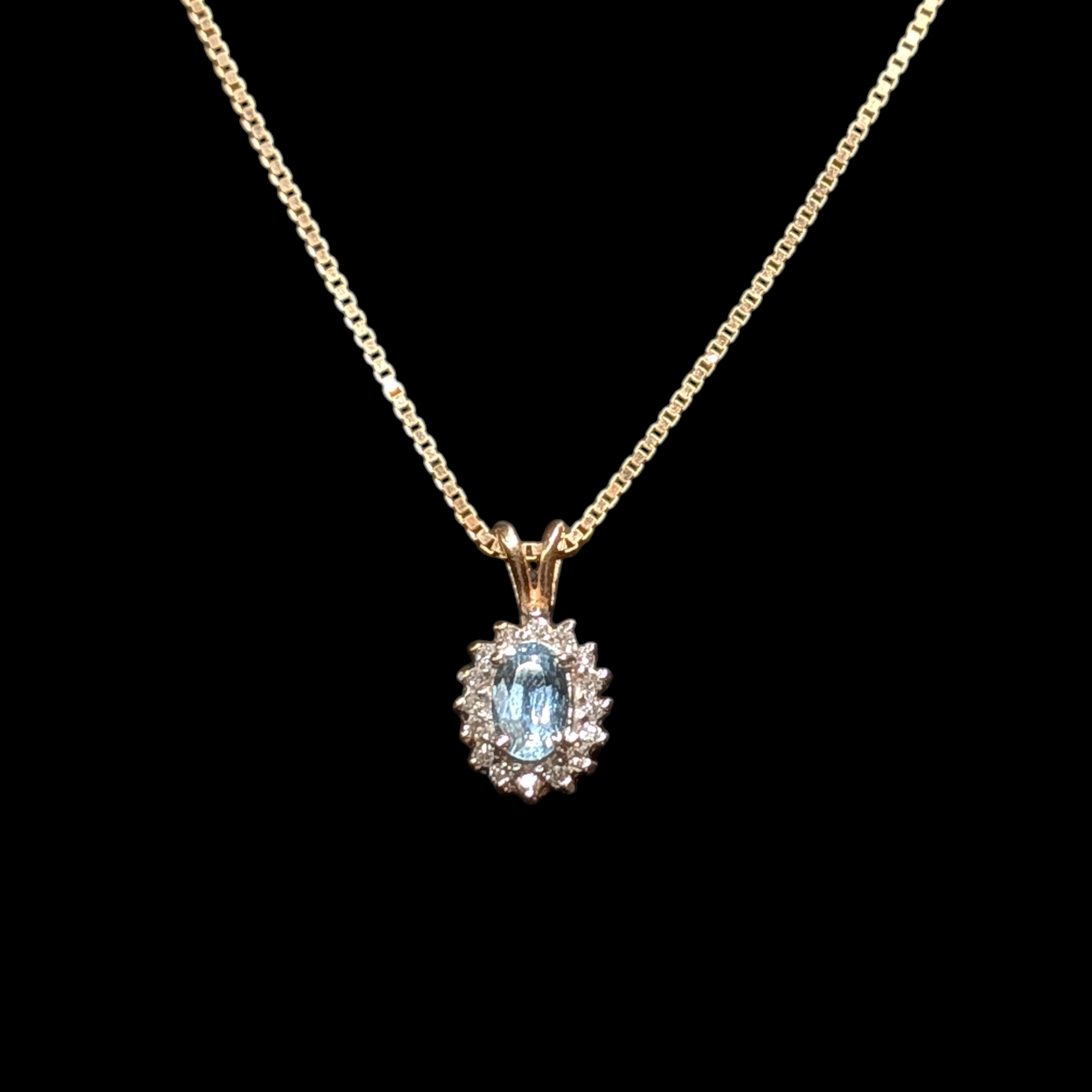 - Dimensions: Pendant: 1/2" x 5/16", Aquamarine: 6x4mm, Chain: 18"