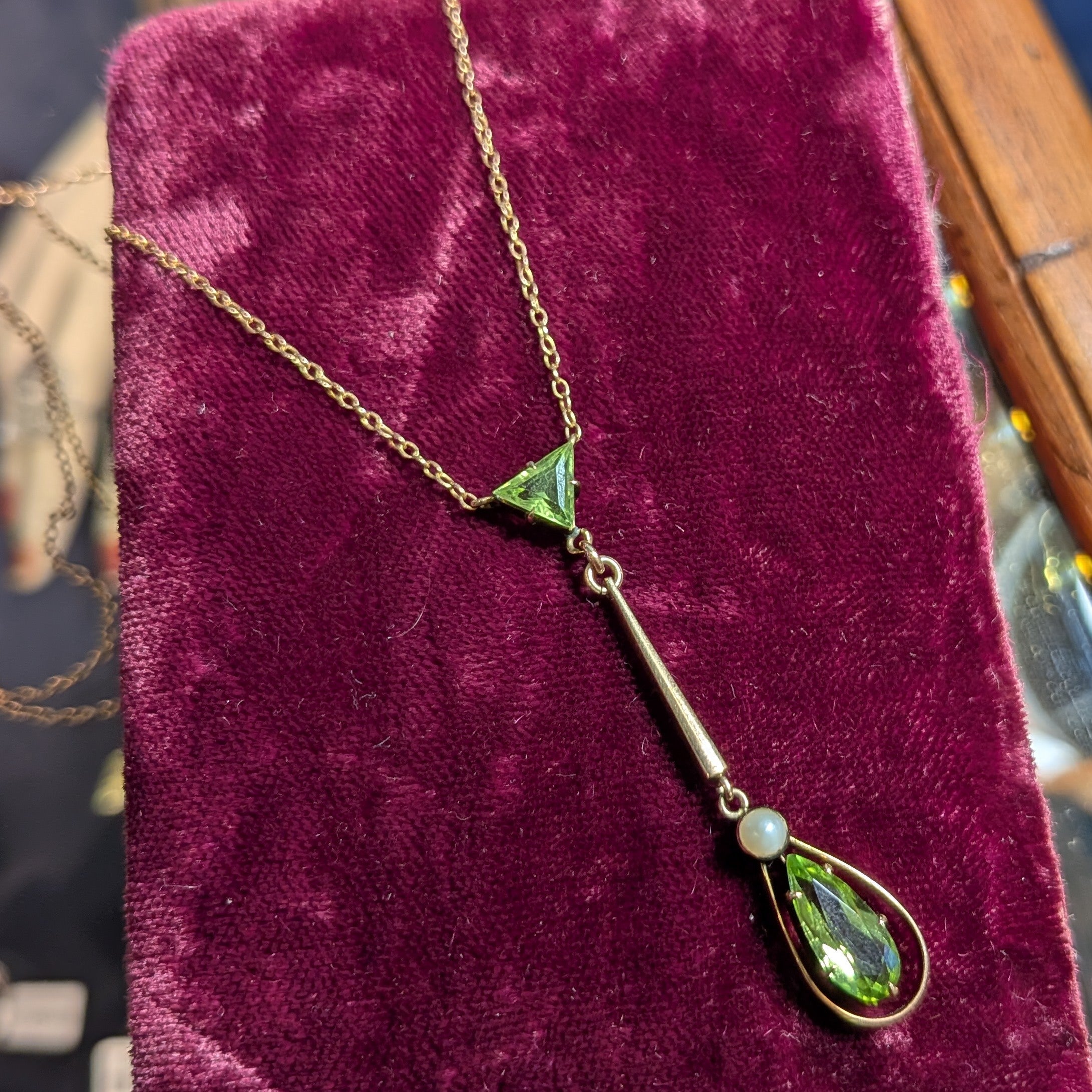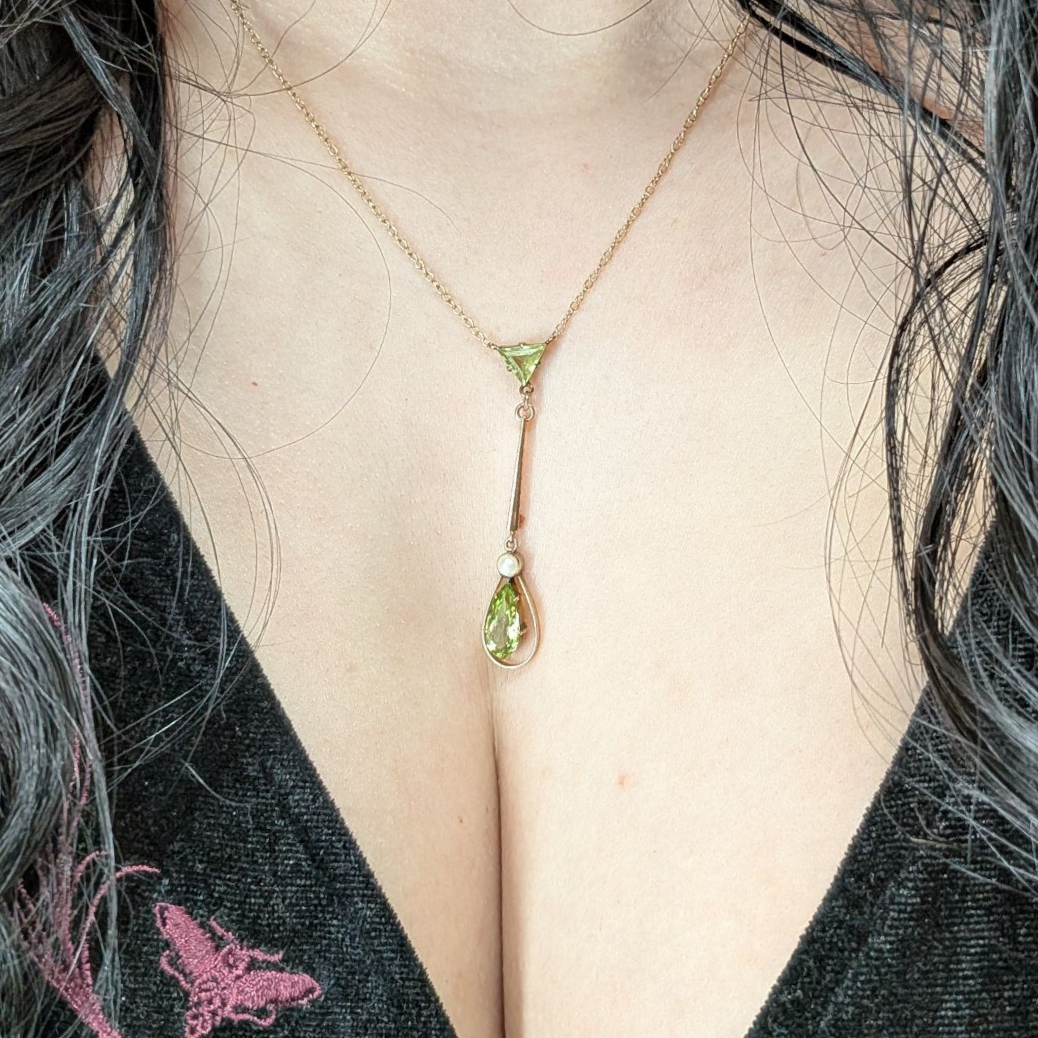 - Dimensions: 17", Pendant Length: 1 13/16", Peridot: 11.4mmx5.3mm, 5.6x6mm, Seed Pearl: 3.3mm
