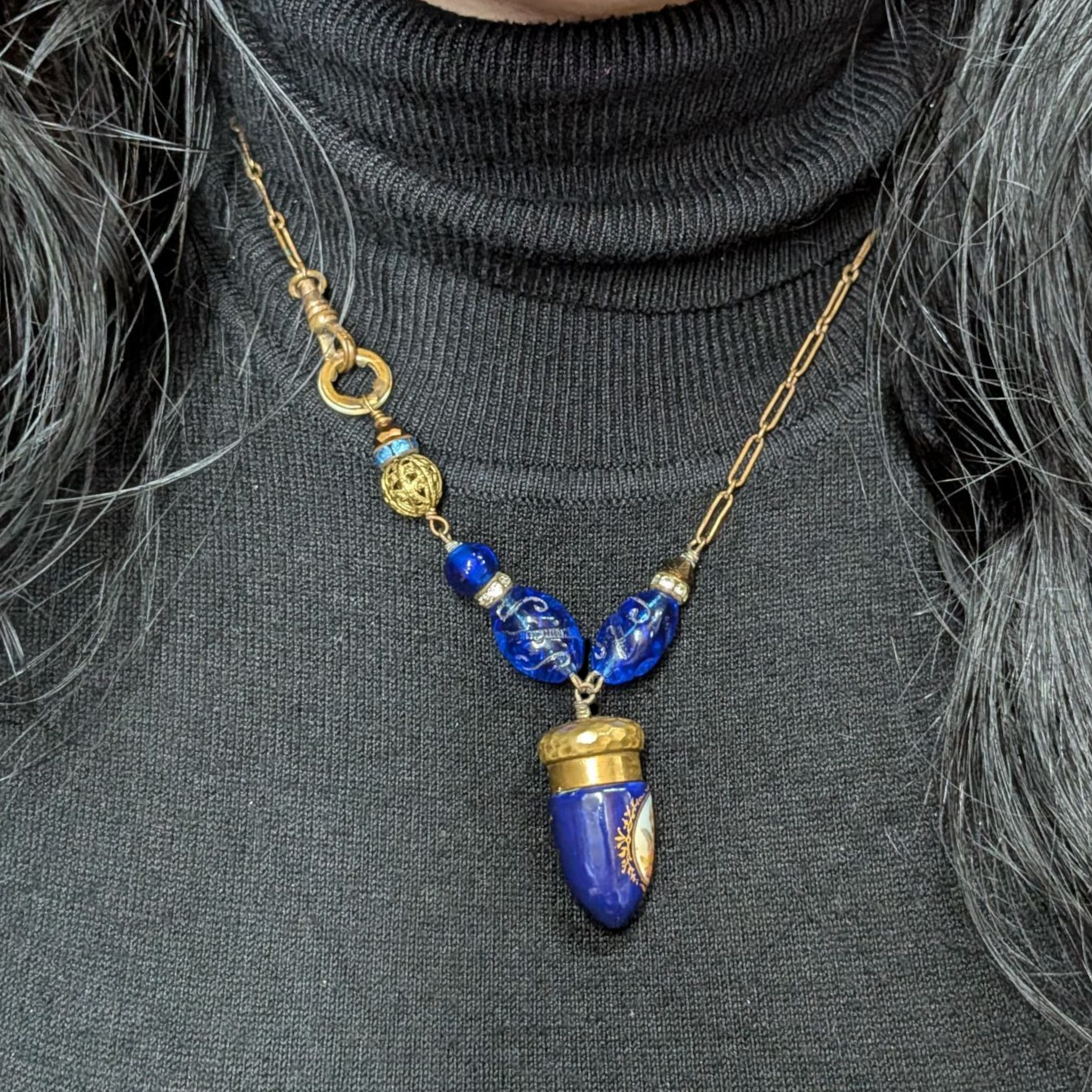 - Material: Gold Filled Chain, Glass, Limoges